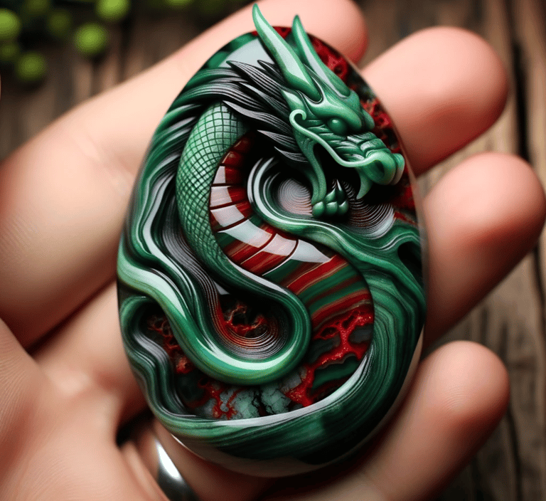 دراجون بلودستون، المعروف أيضًا بحجر دم التنين، هو نوع فريد من الأحجار الكريمة يتميز بألوانه الغنية وخصائصه الجذابة. يتكون هذا الحجر الرائع من الكوارتز الأخضر مع بقع أو شرائط حمراء، وهذه الألوان الحمراء غالبًا ما تكون بسبب وجود الحديد.