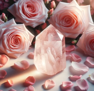 يُعتقد أن الكوارتز الوردي يحمل خصائص تعزز الحب والرقة والتعاطف. يقال إنه يساعد في فتح القلب للحب ويعزز العلاقات العاطفية. كما يُعتقد أنه يساعد في تهدئة العواطف ويجلب السلام الداخلي والراحة النفسية.