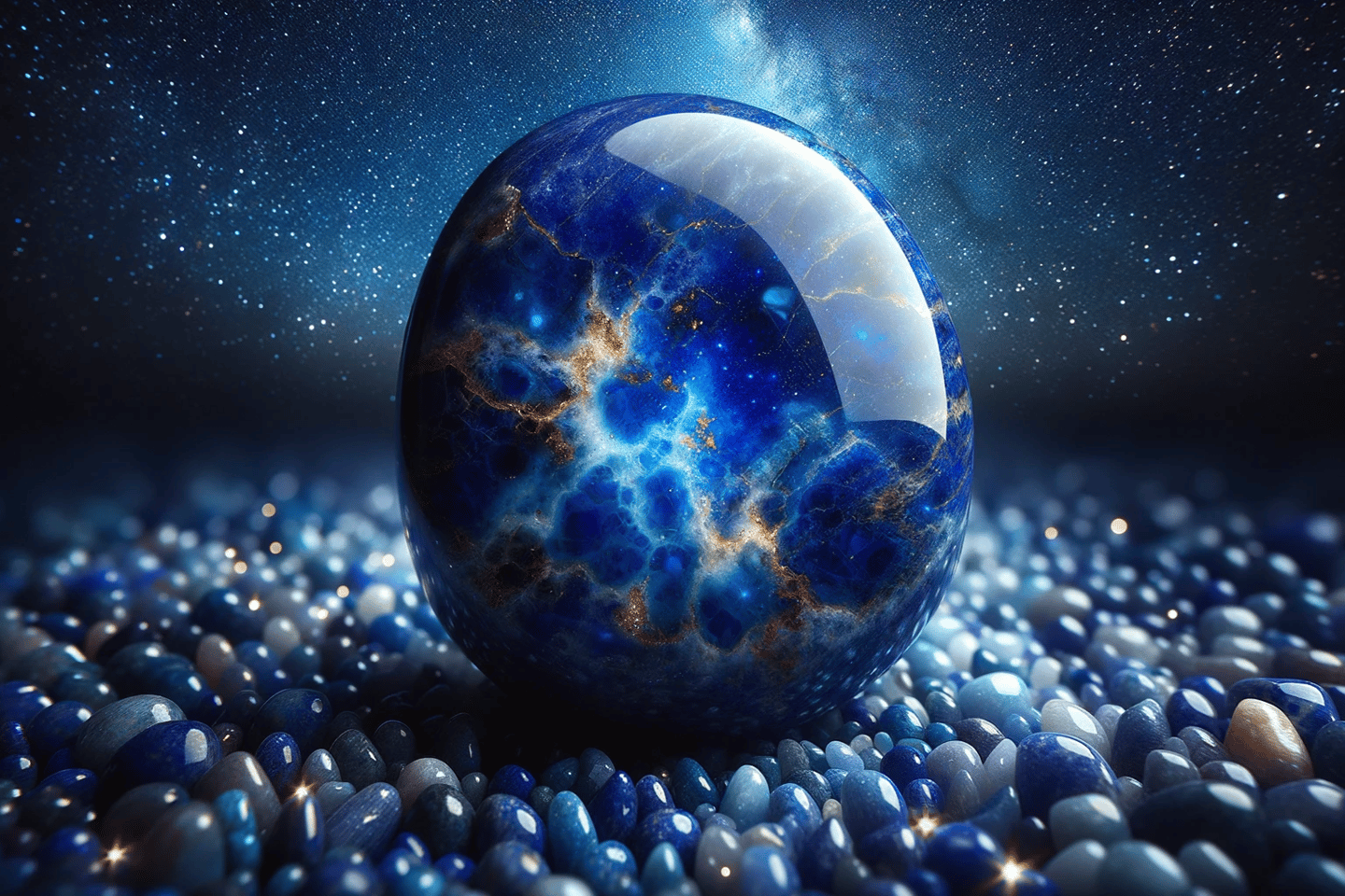 اللازورد، المعروف بلونه الأزرق العميق وبريقه الذهبي، يُعد من الأحجار الكريمة النادرة والمقدرة في العديد من الثقافات حول العالم. يتميز هذا الحجر بألوانه الزرقاء الساحرة وبقع البيريت الذهبية التي تضفي عليه جمالًا مميزًا.
